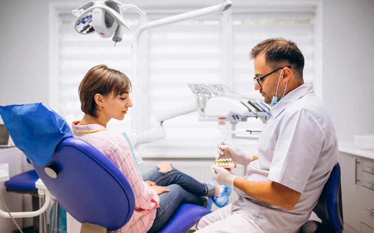 La cirugía de implantes dentales es un procedimiento que reemplaza las raíces de los dientes con pernos metálicos que parecen tornillos y reemplaza el diente faltante, o dañado, con un diente artificial que tiene el mismo aspecto y que cumple la misma función que los dientes reales